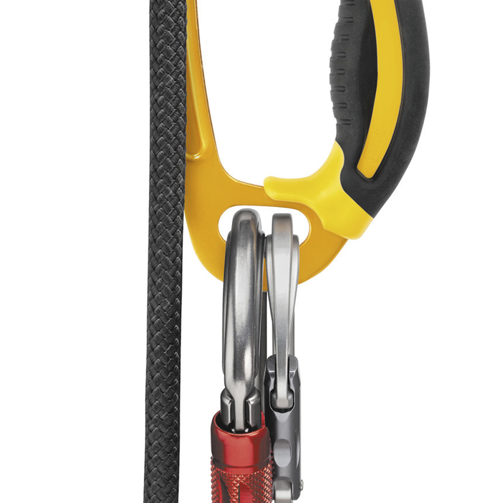 En cuanto a su practicidad, el bloqueador ASCENSION ofrece una serie de características que facilitan su uso en el lugar de trabajo. Con un amplio orificio inferior para la conexión de elementos de amarre y un orificio superior para mosquetonear la cuerda.